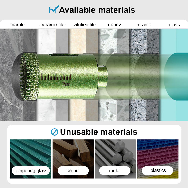 RENDIMIENTO DE CORTE DURADERO Y EFICAZ - Fabricado con diamante de alta calidad, este abridor de sierras de corona garantiza durabilidad y rendimiento a largo plazo. La construcción de diamante combina dureza y resistencia al calor, ideal para cortar materiales duros sin sobrecalentarse.