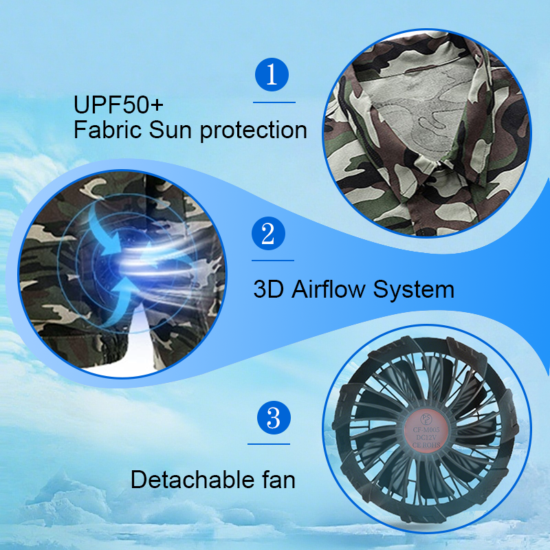 VERSATILIDAD EN MÚLTIPLES ESCENARIOS - Esta chaqueta refrigerante no le pesará durante un uso prolongado. El diseño táctico funciona igual de bien para obras, viajes de pesca, montar en moto o eventos al aire libre. Elige entre camuflaje, gris o azul marino para combinar con tu estilo.