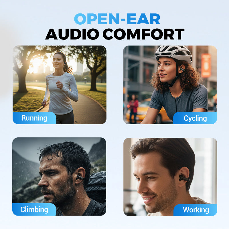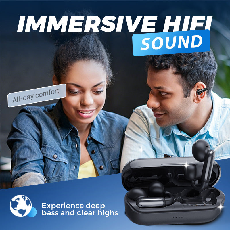 DISEÑO DE CLIP SEGURO PARA LA OREJA - Diseñado para ofrecer comodidad y estabilidad, el clip abierto se coloca suavemente en la oreja sin introducirse en el canal auditivo. Esto garantiza un ajuste seguro durante la realización de actividades y permite llevarlo puesto todo el día sin molestias.