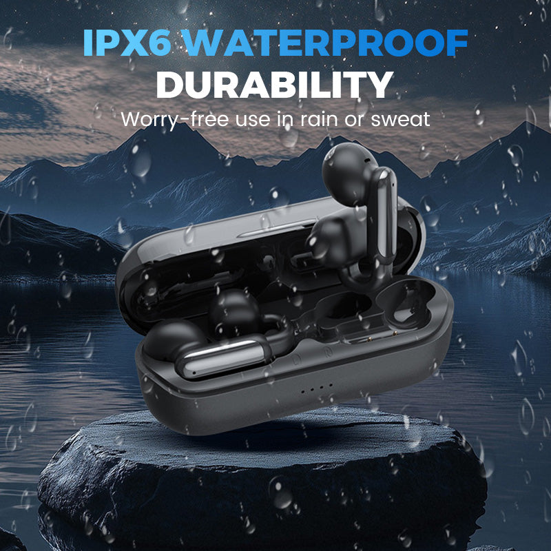 CLASIFICACIÓN DE RESISTENCIA AL AGUA IPX6 - Diseñados para soportar las inclemencias del tiempo, estos auriculares están protegidos contra el sudor, la lluvia y el polvo. Úsalos con confianza durante entrenamientos intensos o aventuras al aire libre, sin importar las condiciones meteorológicas.